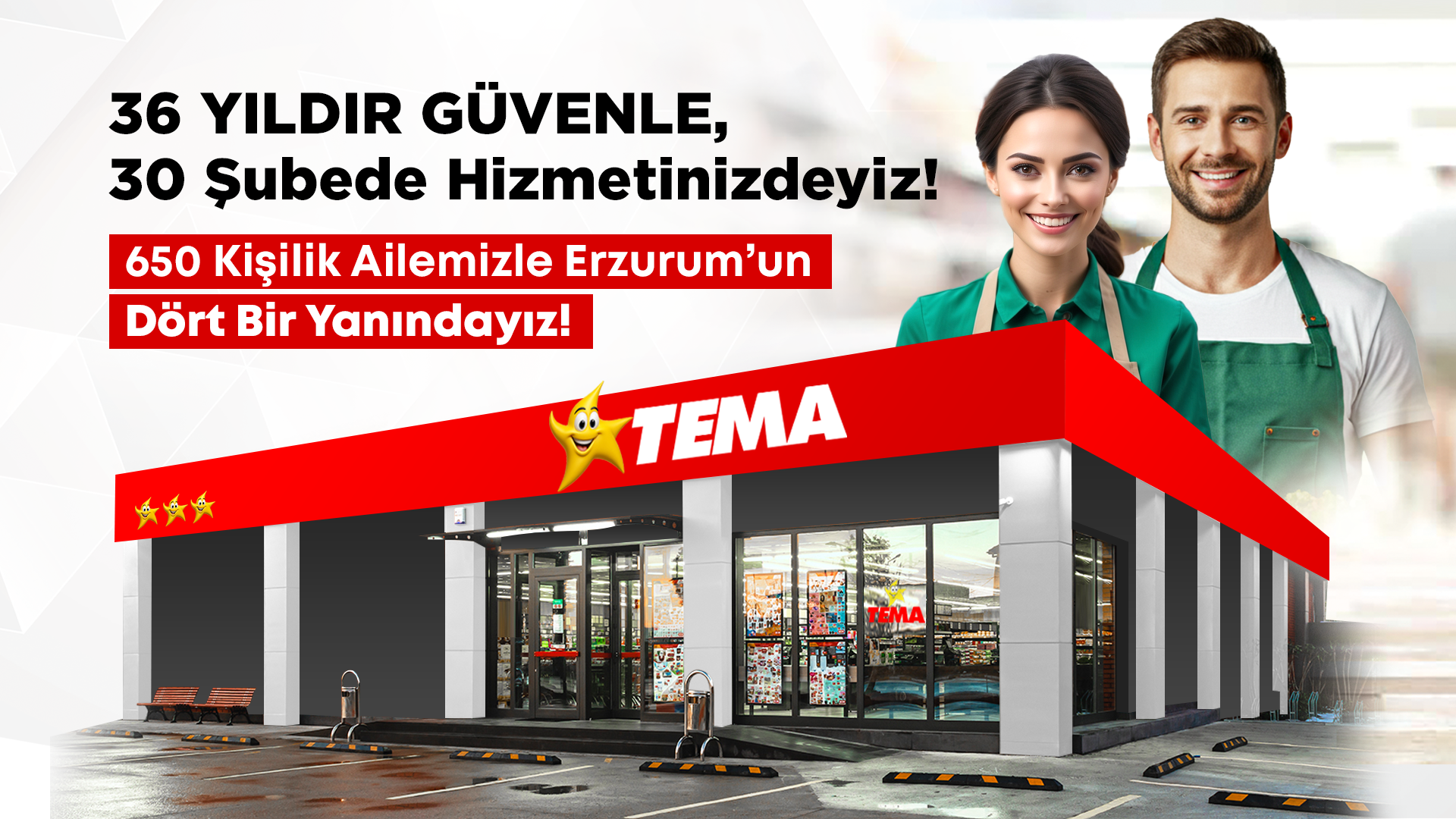 İhtiyaçlarınıza yönelik her türlü çözümü bulabileceğiniz çözüm ortağınız Tema Marketler Zinciri ile yola güvenle devam edebilirsiniz. Firmamız bünyesinde 3 ana odağımız bulunmaktadır. Memnuniyet, özgünlük ve güvenirlik çerçevesinde ilk günden bu yana sunduğumuz hizmetlerimiz ile tecrübe kazanmaya devam ediyoruz.Kurucumuz Zülküf BAKAÇ tarafından 1989 yılında kurulan markamız Tema Marketler Zinciri faaileyetine Doğu Anadolu bölgesinde aktif 25 Şubesi ile devam etmektedir. Başkalarından daha özgün, daha başarılı ve daha kaliteli hizmet vermenin özünde memnuniyeti ummak yatıyor. Bu işe ilk başladığımızdan bu yana sahip olduğumuz değerleri korumak üzere hareket ediyoruz. Kurucumuzu bu işte başarılı olmaya sürükleyen ana faktör de yine müşteri memnuniyetinden başka bir şey değildi.